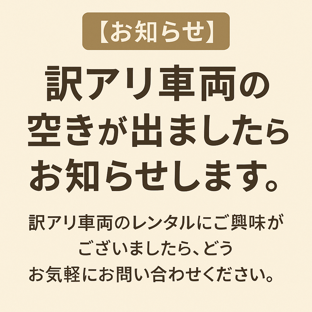 【お知らせ】訳アリ車両の空きが出たらご案内します