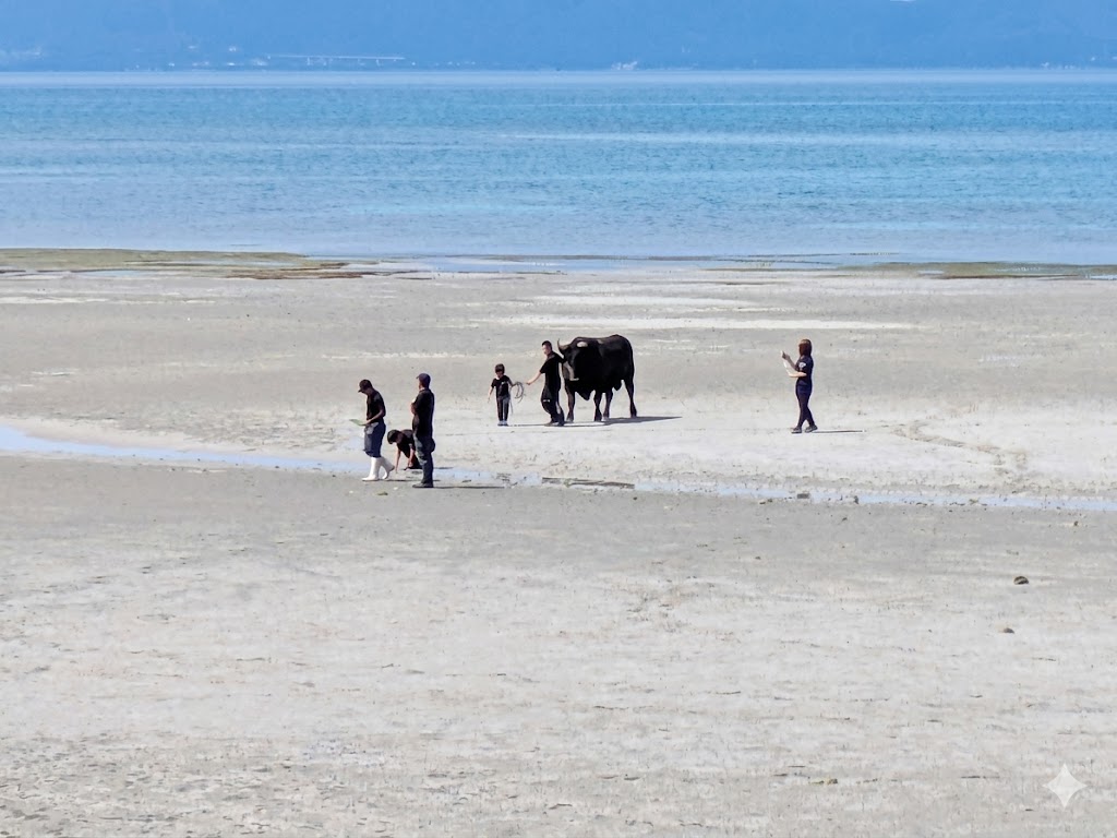 さらに衝撃! 砂浜には大きな牛さんがお散歩中!?